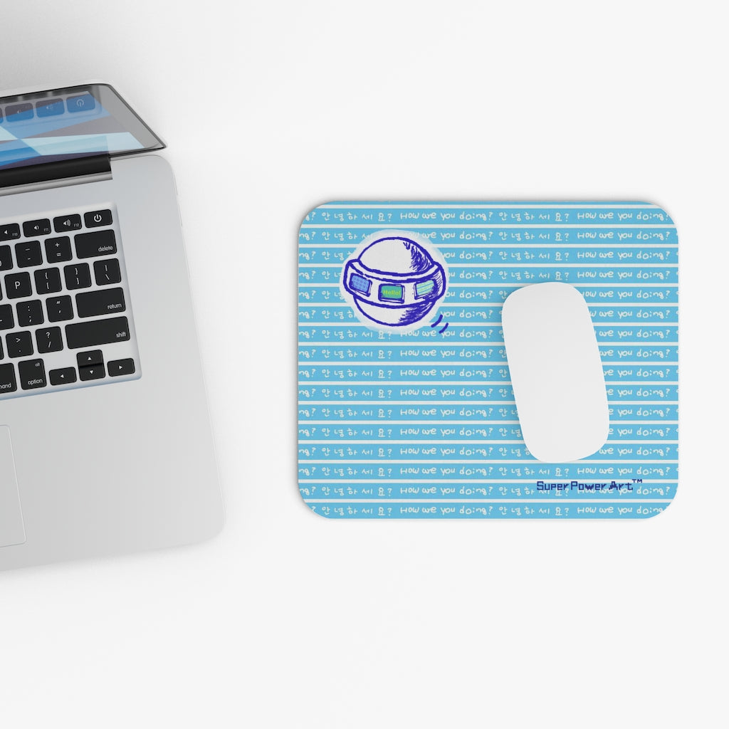 Super Power Art_UFO_How are you doing_Mouse Pad (Rectangle)_AOP_Light blue