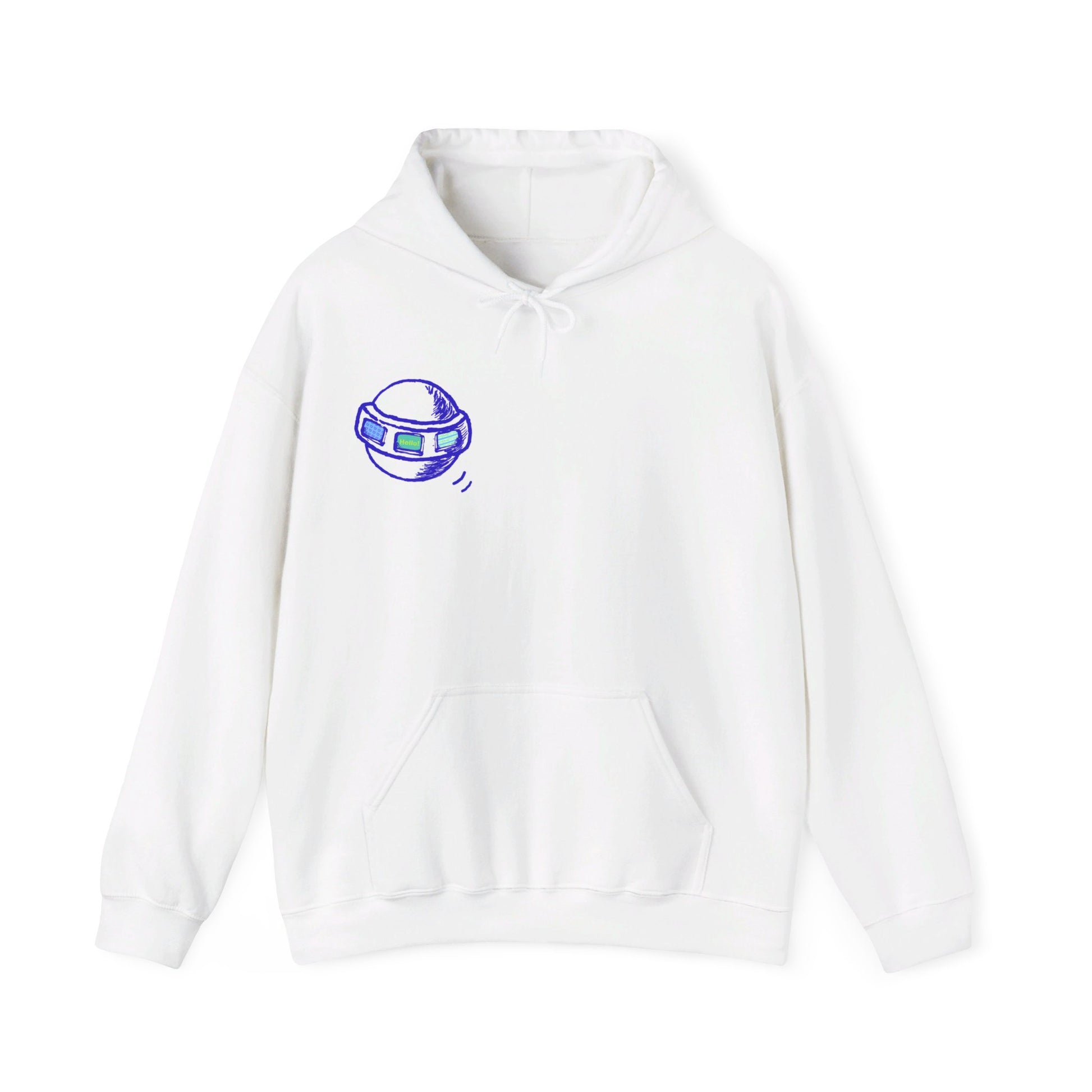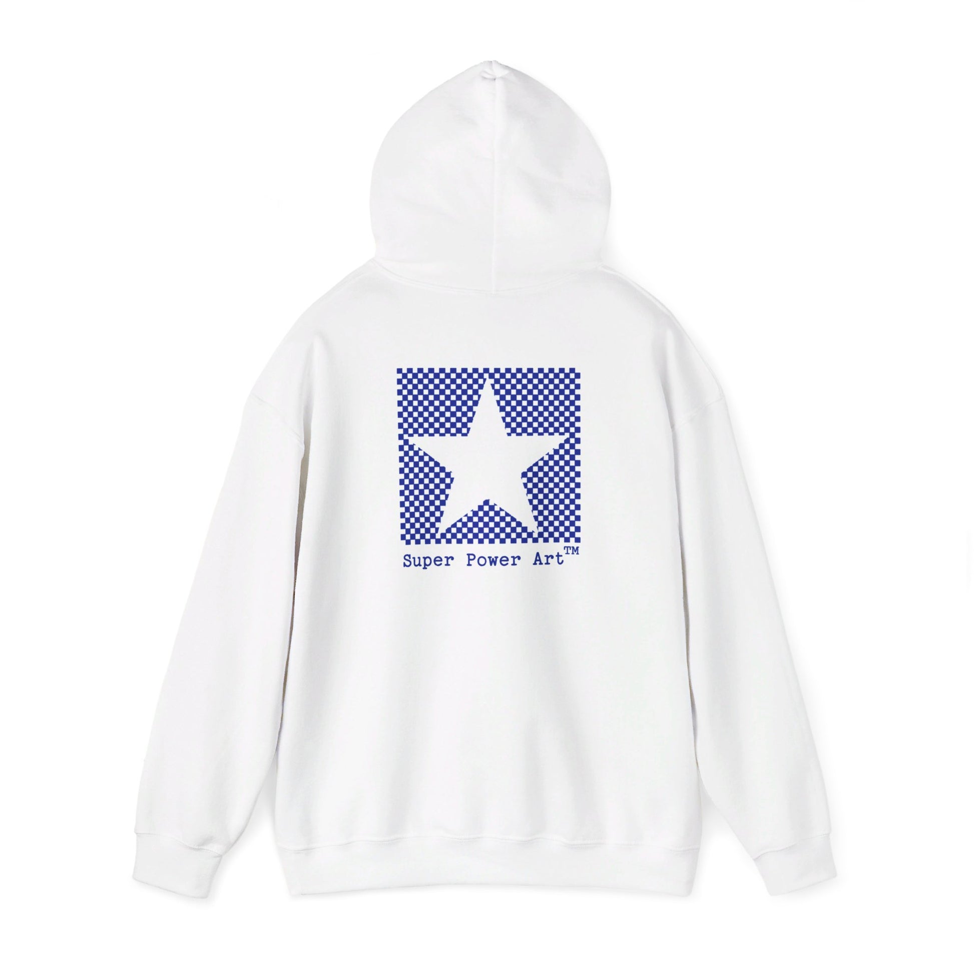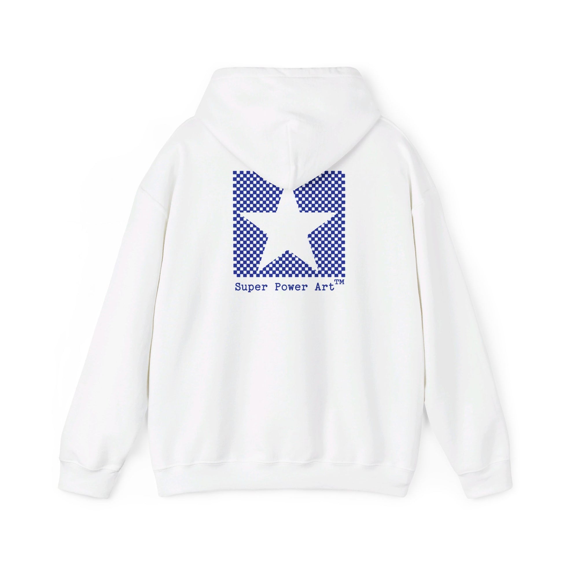 Superpowerart Hoodie — UFO Front & Star Logo Back (Unisex Heavy Blend)
